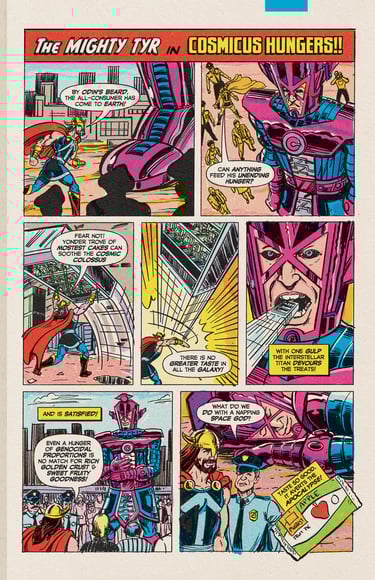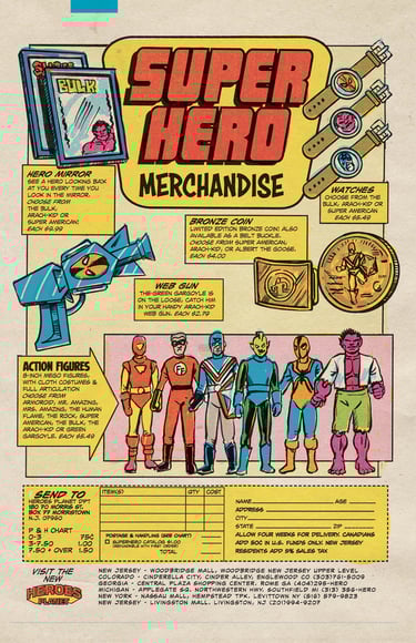 To enhance the retro feel, I also added textures to replicate some of the printing imperfections typical of those archaic (and long-retired) presses. On each page, I included a colored strip that newsstands once used to determine when to pull issues from the shelves—an element not used during the period I’m referencing, but one that appeared in many of the comics I grew up with. Despite being a bit anachronistic, I added it anyway, chalking it up to multiversal discrepancies.