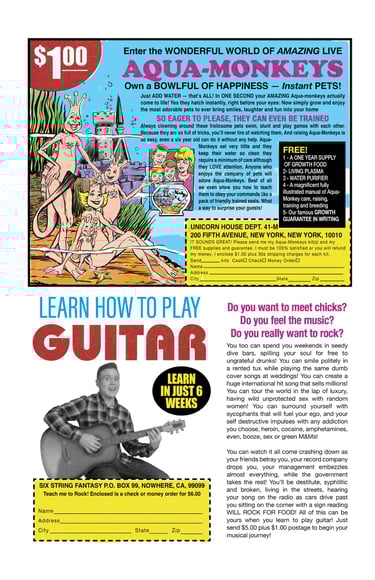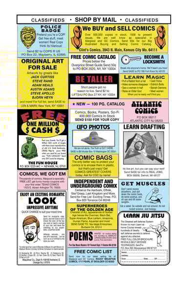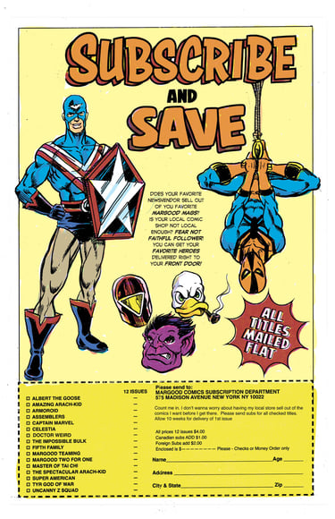 The content of the ads evolved over time. Many of the classified-style ads were swapped out as I revisited older comics and discovered new ones to emulate. A few ads also feature my local comic shops and retailer friends, adding a personal touch to the homage.
