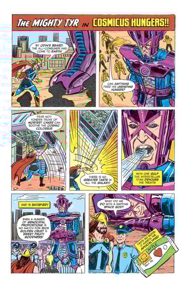 Like much of the book, I colored the pages in Procreate on the iPad. Ironically, for a book intended to replicate a very specific type of comic from a pre-digital era, a large part of it was done on a tablet. I sampled colors from a scan of an old 64-color chart—these weren’t exact CMYK values, just rough approximations, much like traditional color guides were simply reference points for someone else to separate into final CMYK values. I approached the coloring loosely, not overly concerned with staying within the lines, but more focused on discovering the color combinations that felt right within the aesthetic of the era I was emulating. I didn’t write out RYB codes since they weren’t necessary for my separations.