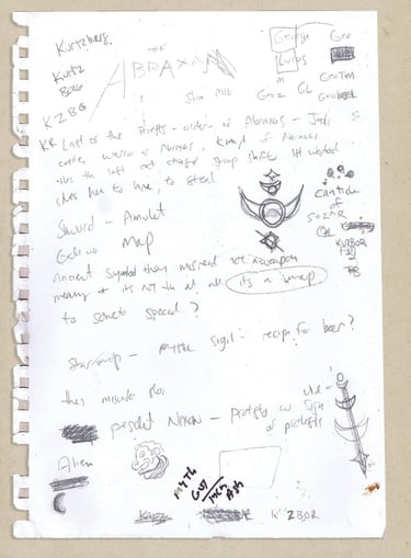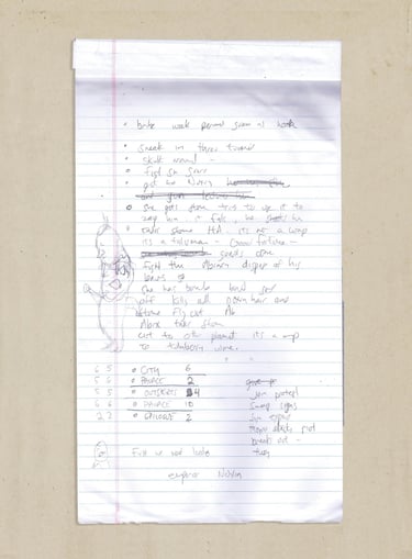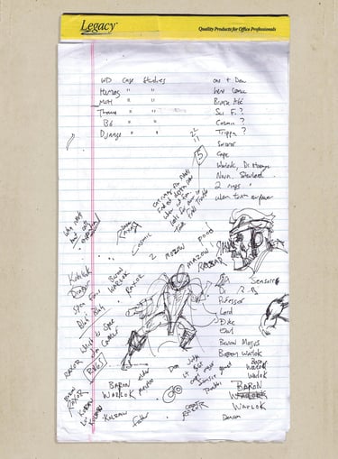 Explore the preliminary work dont for The Last Abraxan including plot pages, character designs, pencil, ink and color tests, plus loads of research.