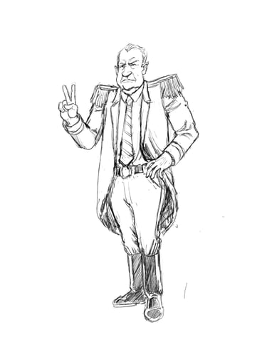 I knew I wanted a simple plot, and since much of the work from that era touched on politics and social issues, often thinly veiled behind alien worlds and faces, I did the same. Nixon (or a stand-in for him) was a common villain in those days, so I gave him pointed ears and green skin and made him my villain as well. Since most comics of the era were produced quickly, I wanted to capture that same sense of urgency. I outlined the story in broad strokes. I didn’t want to get too complex; I wanted something quick that read as if it had been done under deadline pressure.