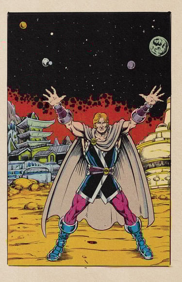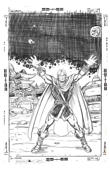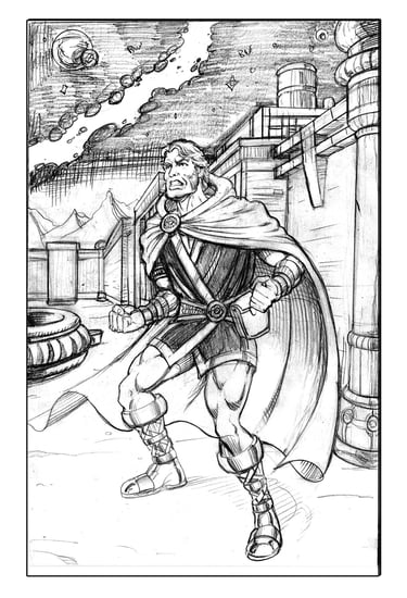 I knew I wanted to create a comic that would be a tribute to the comics of my formative years. I recall Jim Starlin once saying that he set Warlock in space so he wouldn’t have to draw cars, horses, or anything that required reference—he could simply make everything up. That aligned perfectly with my desire to do something like Star Wars, set in space on exotic worlds with alien races.